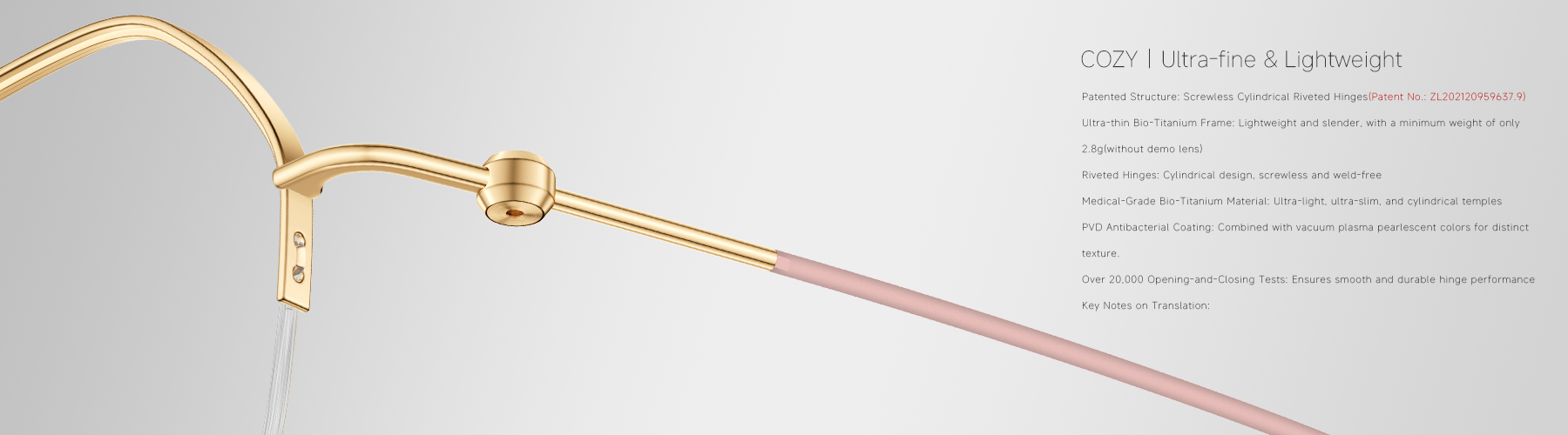 Ultra-thin Bio-Titanium Frame: Lightweight and slender, with a minimum weight of only 2.8g(without demo lens)