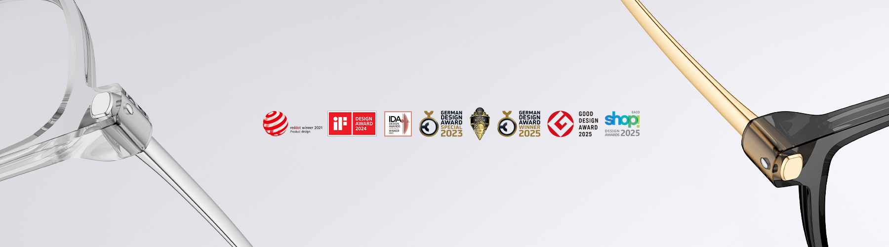 秉承 「无边世界 一览纯净」 以「无螺丝 无焊点 无铆钉」专利设计为理念 采用极轻 低敏超弹性的生物金属为原材料